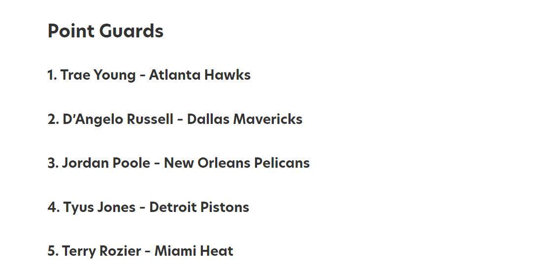 控球后卫:特雷杨、拉塞尔、普尔、泰厄斯·琼斯和罗齐尔