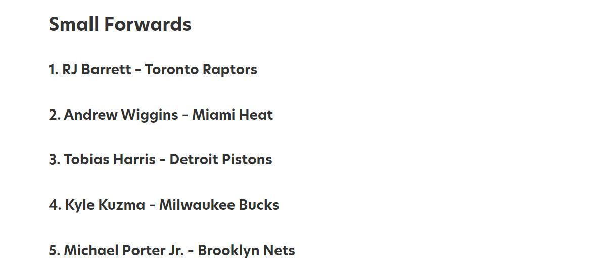 小前锋:巴雷特、维金斯、哈里斯、库兹马和小波特